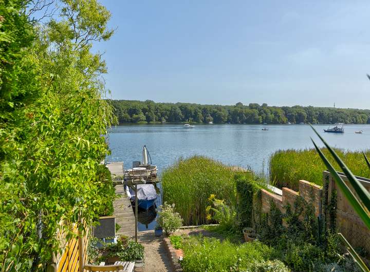 Das Grundstück liegt direkt am Kalksee, einem besonders sauberen Badesee, der im Jahr 2002 mit der blauen EU-Flagge für seine hervorragende Wasserqualität ausgezeichnet wurde. Ein breiter Bootssteg bietet Platz für zwei Boote und ermöglicht einen direkten Zugang zum See.