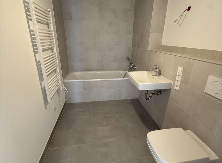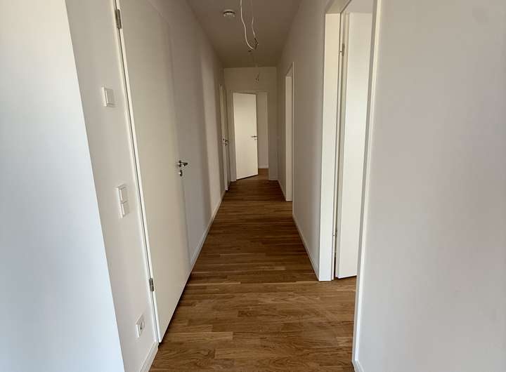 Die Wohnung hat 4-Zimmer, 2 Bäder, eines davon mit einer bodengleichen Dusche. Von der großzügigen Loggia aus, die nach Westen ausgerichtet ist, können Sie die Abendsonne genießen. Der Aufzug fährt bis in die Tiefgarage und sorgt für einen stufenlosen, komfortablen Zugang zu den Wohnungen. Elektrische Türen gewähren einen barrierearmen Zugang zu den meisten Allgemeinbereichen. Eine hochwärmegedämmte Bauweise, das kontrollierte Zu- und Abluftsystem und dreifachverglaste Fenster bewirken eine hohe energetische Qualität. Hochwertige Parkettböden schaffen eine wohnliche Atmosphäre. Die Beheizung erfolgt durch eine Fußbodenheizung mit Fernwärme. Elektrische Rollläden und eine moderne und leistungsfähige Netzwerkverkabelung gewährleisten einen hohen Wohnkomfort. Bei den Tiefgaragenstellplätzen besteht die Möglichkeit, über die Stadtwerke Neu-Isenburg GmbH eine Ladestation für Elektroautos einzurichten, ein Informationsblatt erhalten Sie auf Wunsch. Ebenfalls werden auf den Häusern Photovoltaikanalgen errichtet. Mieter können neben den positiven Effekten auf die Umwelt auch Stromkosten sparen im sogenannten Mieterstrommodell, beim Abschluss eines entsprechenden Vertrags über die Stadtwerke Neu-Isenburg.