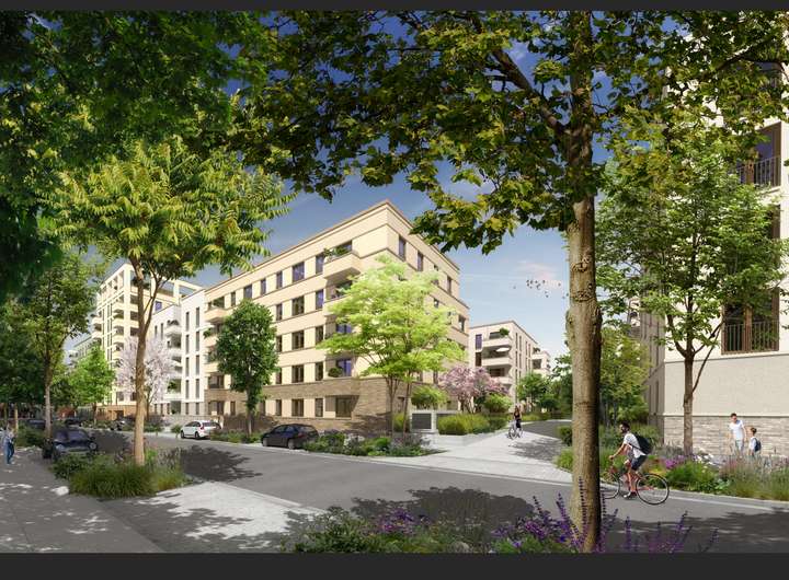Im Neubaugebiet Stadtquartier Süd, Neue Welt, sollen insgesamt rund 1.000 Wohnungen und rund 1.600 Ar-beitsplätze entstehen. Es liegt sehr verkehrsgünstig und wird im zentralen Bereich eine große Grünfläche und einen Spielplatz auf einer Fläche von insgesamt rund 6.000,00 m². erhalten. Die Fertigstellung ist derzeit für das Frühjahr 2026 geplant. Ein gut sortierter, im Juni 2024 neu eröffneter, Lebensmittelmarkt befindet sich in unmittelbarer Nähe. Im Frühjahr 2025 hat eine neue Kindertagesstätte in der Schleussnerstraße 6 im Baugebiet mit sieben Betreuungsgruppen eröffnet. Geplant ist auch, dass einzelne Wohnungen zur Kinderbetreuung an Tageseltern vermietet werden. Voraussichtlich Ende des Jahres 2027 wird eine Markthalle mit einem hochwertigen Gastronomie- und Lebensmittelangebot sowie ein Quartiersplatz, mit rund 2.800,00 m², fertiggestellt.