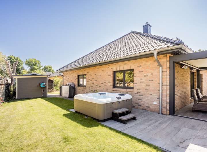 Der multifunktionale Wintergarten mit Heizstrahlern und Südwestausrichtung ist der perfekte Ort, um das ganze Jahr über die Sonne zu genießen. Der großzügige Garten lädt zum Entspannen und Verweilen ein. Ein Carport mit Elektroanschluss sowie zwei weitere Außenstellplätze bieten ausreichend Parkmöglichkeiten.