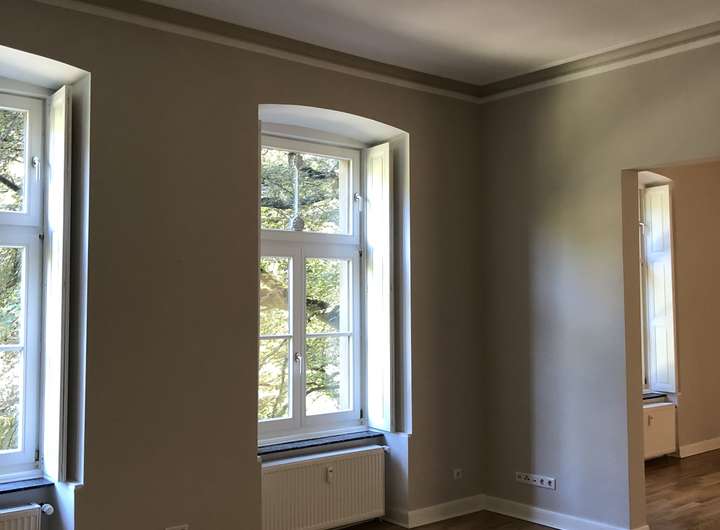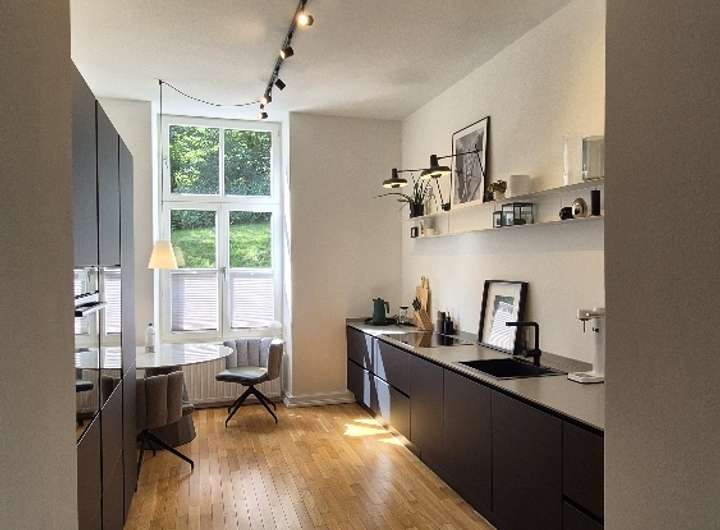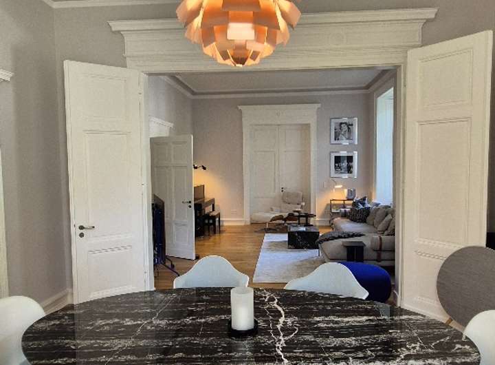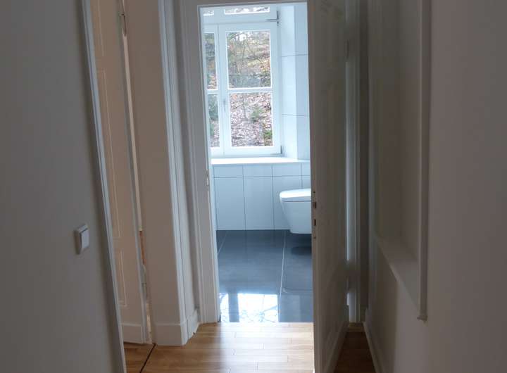 Im ersten Stock auch eine große Wohnung mit ebenfalls über 150 m2 Wohnfläche, gleicher Luxusausstattung wie die anderen Wohnungen und auch für 1.950 € kalt vermietet.