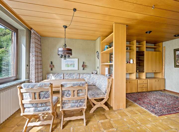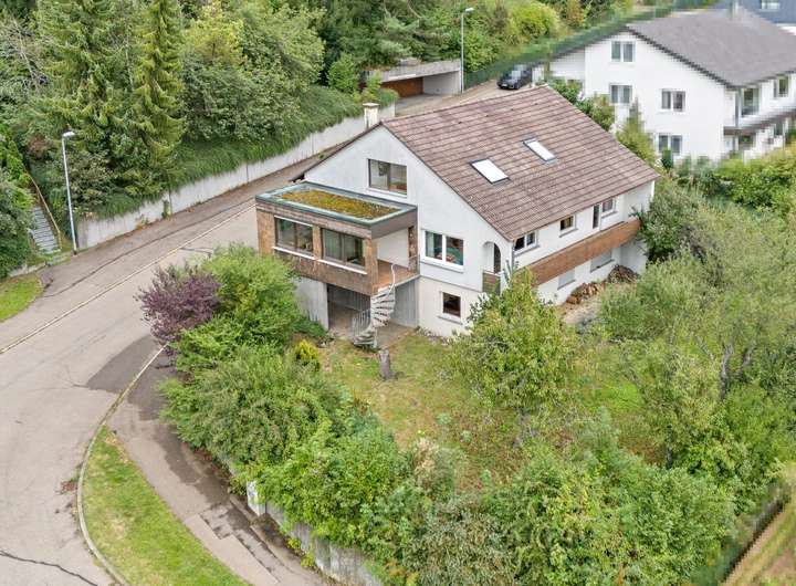 Das Haus ist leicht hangseitig gebaut und verfügt über einen Anbau aus ca. 1976, welcher das Esszimmer im Erdgeschoss vergrößerte.