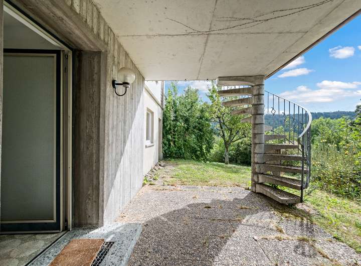 Vom Wohnzimmer, sowie vom Schlafzimmer aus ist der Balkon zu erreichen,. Die bereits angesprochene Terrasse ist vom Essbereich aus zu begehen und verfügt über eine Wendeltreppe, um in den Garten zu gelangen.