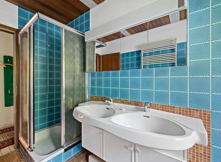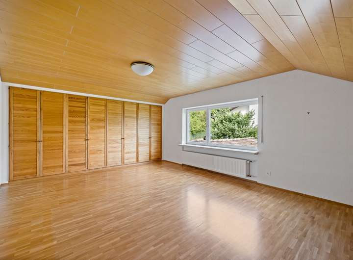Im Erdgeschoss befindet sich die Küche, das großzügige Wohn-/Esszimmer, drei Zimmer, ein separates WC und ein Bad.