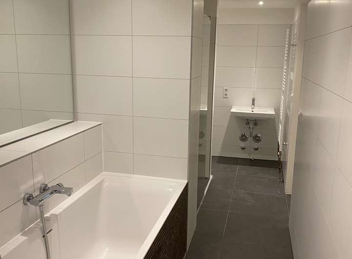 Fußboden mit hochwertigen Holzdielen, modernes Bad mit Wanne, Dusche und WC sowie zusätzlich eine Gästetoilette. Eigener Eingang zur Wohnung. Die Beheizung erfolgt per Gasheizung.