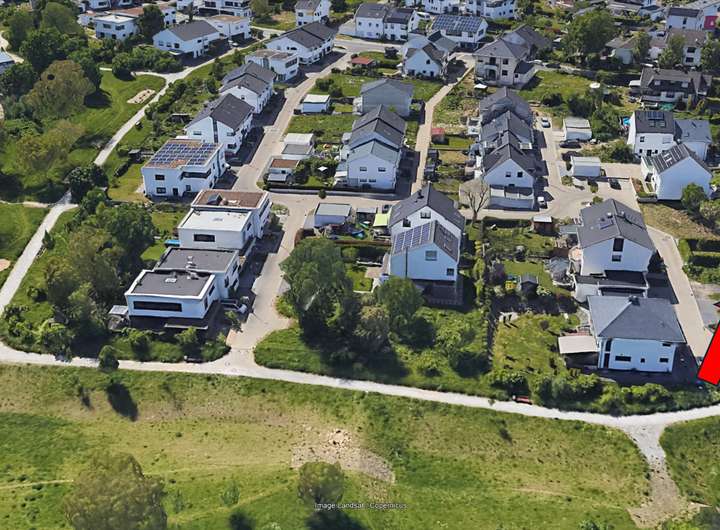 Das Grundstück ist von einem schönen Grüngürtel umgeben, der das Baugebiet nahtlos mit den umliegenden Streuobstwiesen verbindet.