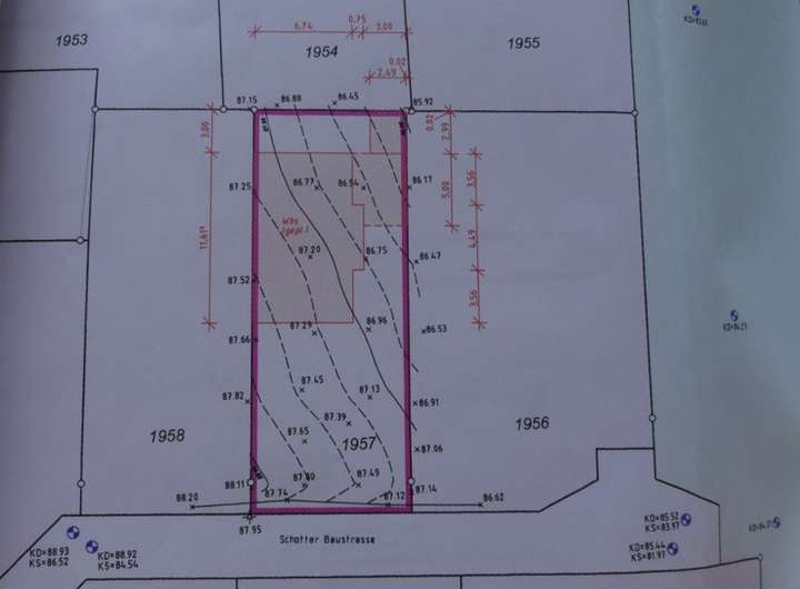 Größe ca. 283m2, 10,5m Breite und 27m Tiefe. Flurstück 1957 im Geltungsbereich des B-Plans 260 "Südliches Güls".