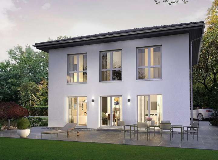 Dieser Architektenentwurf ist ein Planungsvorschlag und dient der Inspiration und Orientierung. Grundrisse, Architektur-Extras, Ausbau- und Effizienzhaus-Stufen werden individuell an Ihre Wünsche und Bedürfnisse angepasst.