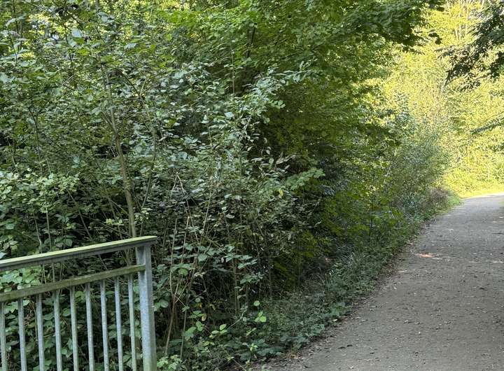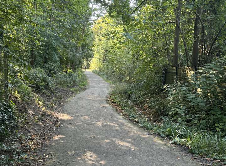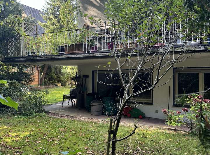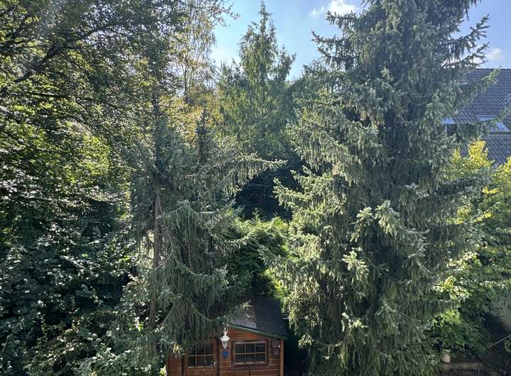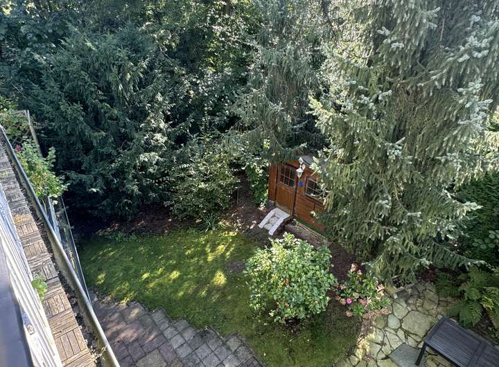 Das Haus liegt ruhig am Ende einer Anliegerstraße, direkt an einem weitläufigen Grüngürtel.
