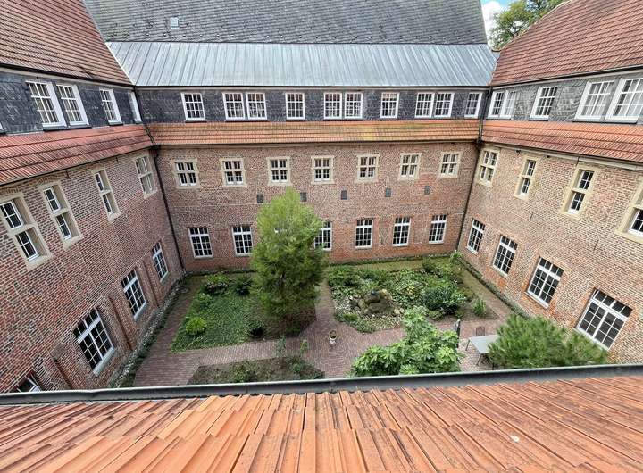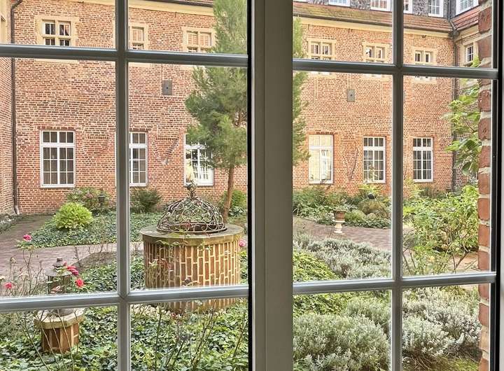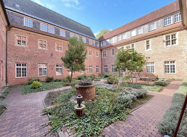 Umgeben von den Klostermauern, bietet der Innenhof Schutz und Privatsphäre; ein ruhiger Rückzugsort. Idyllischer Treffpunkt oder Veranstaltungsort im Freien.
