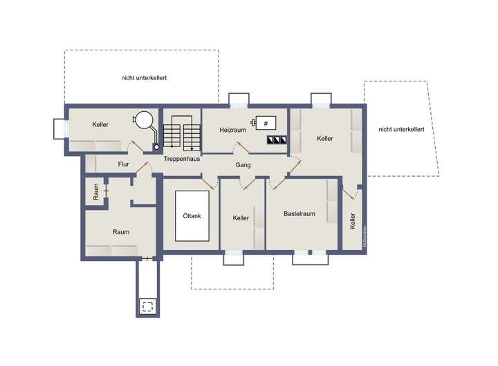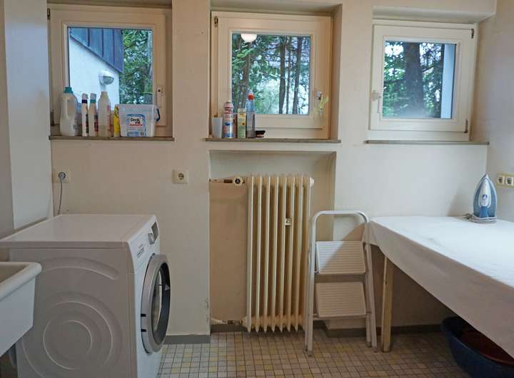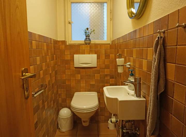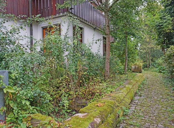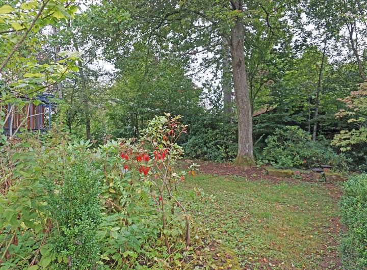 Das Haus ist voll unterkellert und bietet neben den üblichen Funktionsräumen ausreichend Abstellfläche. Der Garten liegt versteckt hinter dem Haus und bietet mit seinem alten Baumbestand, den Buntsandsteinen und den Rhododendren ein idyllisches Rückzugsgebiet.