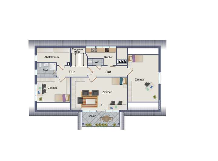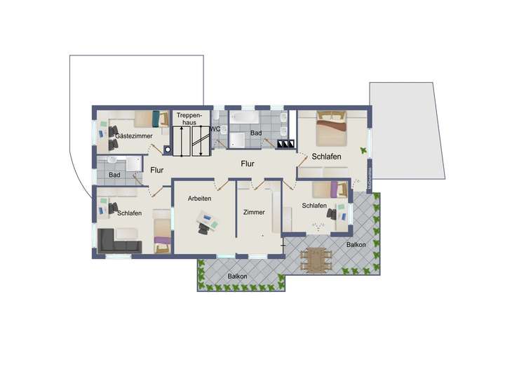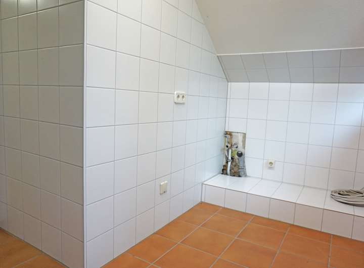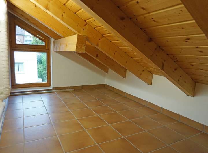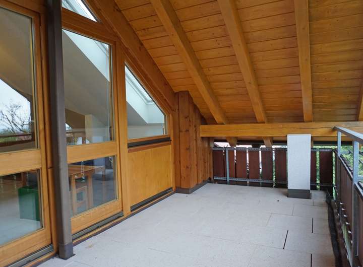 Im Dachgeschoss stehen drei Zimmer, ein Bad, ein Abstellraum sowie eine vorbereitete Küche zur Verfügung. Auch in diesem Geschoss gibt es einen großen, überdachten Balkon, der zusätzlichen Wohnkomfort bietet.