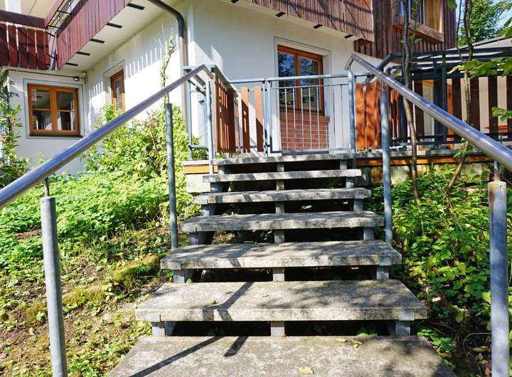 Auf Wunsch lässt sich das Haus mit überschaubarem Aufwand in ein attraktives 3-Parteienhaus umgestalten. Denkbar sind dabei eine weitläufige, zweigeschossige Hauptwohnung, die über eine innenliegende Treppe mit dem Obergeschoss verbunden ist. Diese Einheit eignet sich hervorragend für eine Familie mit mehreren Personen und bietet mit zwei Terrassen im Erdgeschoss, einem großen Balkon im Obergeschoss sowie dem angrenzenden Garten viel Freiraum und Lebensqualität – ideal für Familien mit Kindern.
