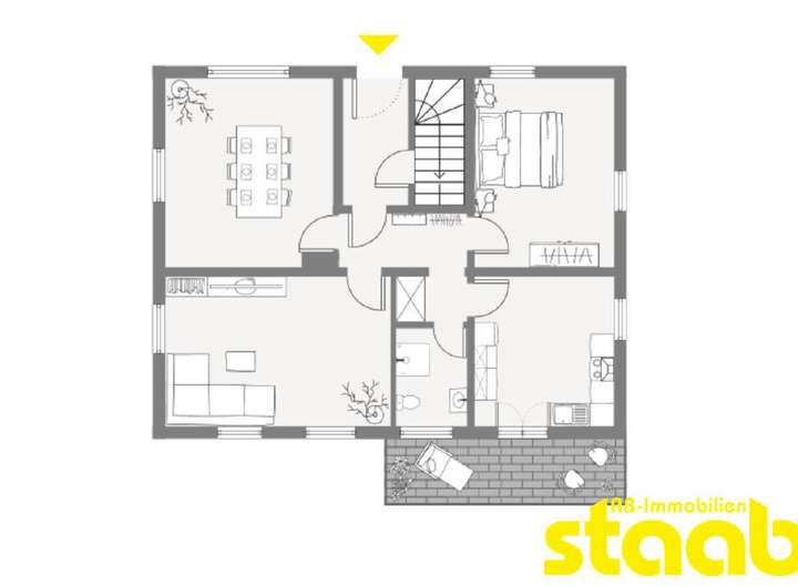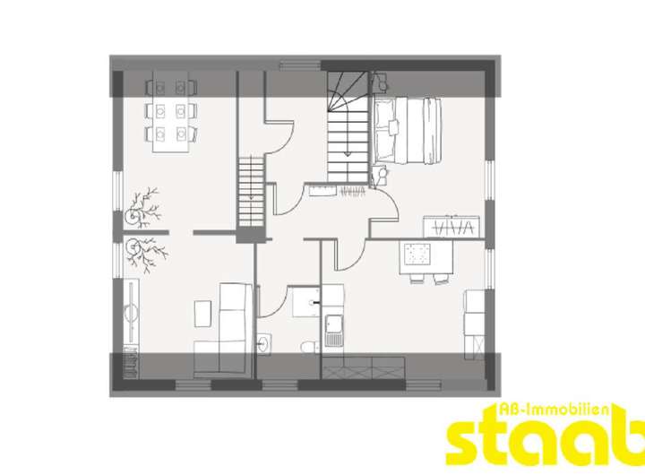 Dachgeschoss: Treppenaufgang - Eingangsbereich/ Flur Wohn-/Esszimmer Schlafzimmer Kinder-/Arbeitszimmer Tageslichtbad mit Dusche