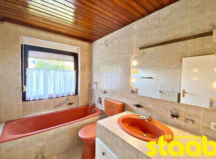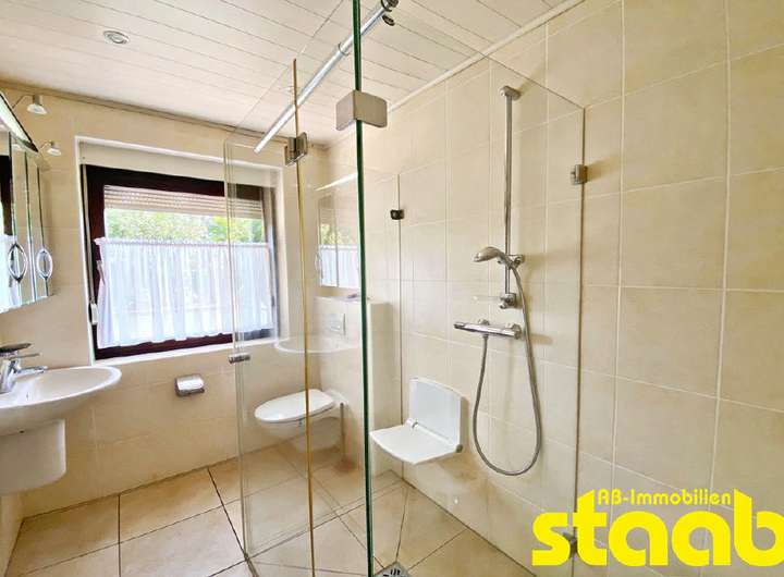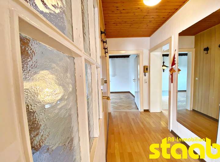 Zum Anwesen gehören eine Garage, die direkt im Haus integriert ist, sowie eine weitere Garage mit Hofeinfahrt im hinteren Bereich des Gebäudes. Die Hoffläche ist gepflastert. Die Wohnungen sind sehr gepflegt; die Bäder stammen teilweise aus dem Baujahr, wobei im Erdgeschoss ein modernes Bad ergänzt wurde. Ein schönes Parkett, sowie Fliesen und teilweise Teppichbelag runden die Grundausstattung ab.