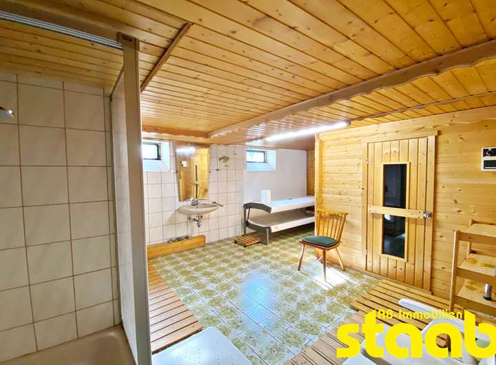 Kellergeschoss: Treppenabgang - Flur Waschküche und Vorratsraum Hobbyraum bzw. Sauna u. Wellnessbereich großer Heizraum Garage (wird heute eher als zusätzliche Lagerfläche genutzt)