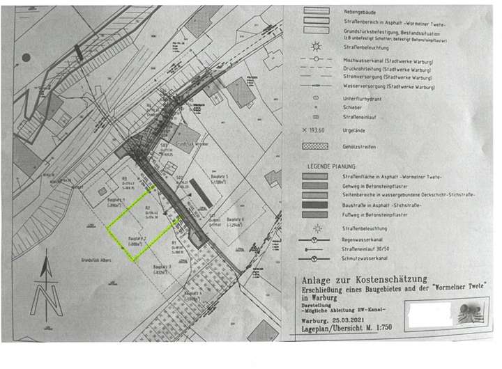 Die Erschließung ist nach Aussage der Stadtwerke Warburg über die vorhandenen Anlagen im Volkmarser Weg möglich. Anschlüsse liegen direkt bzw. nah am Grundstück.