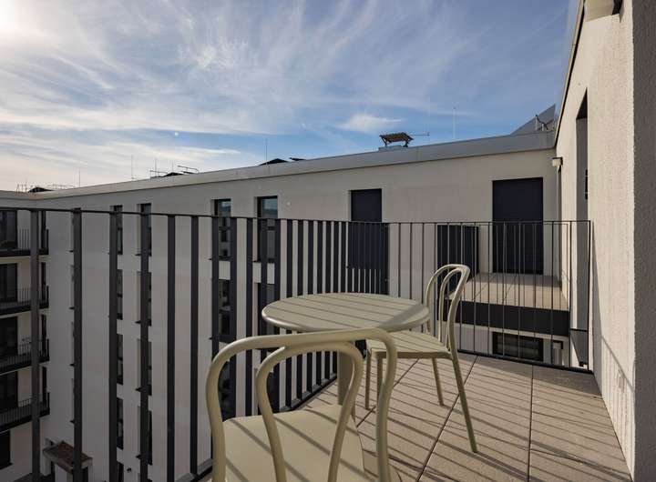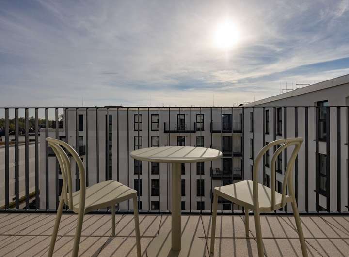 Um die Wohnungen vor Überhitzung zu schützen, wurde in alle Einheiten ein elektrischer Sonnenschutz integriert. Dieser sorgt für angenehme Raumtemperaturen.