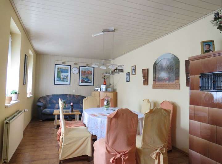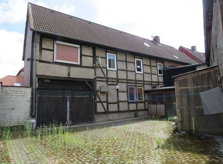 Zum Verkauf steht ein Wohnhaus im Fachwerkstil mit einer ehemaligen Gewerbeeinheit, einem Anbau und einer Scheune in zentraler Ortslage. Das Objekt bietet eine Vielzahl von Nutzungsmöglichkeiten. Hier kann z.B. das EG zu Wohnzwecken oder auch wie einst zu gewerblichen Zwecken genutzt werden. Im EG befinden sich ein Wohnraum, ein Büro, eine Küche, ein Bad, zwei Lagerräume und ein Verkaufsraum mit sep. Eingangsbereich. Das OG wird nur zu Wohnzwecken genutzt und verfügt über sechs Wohn-Schlafräume, ein Ankleidezimmer und ein Bad. Auf dem Dachboden ist ausreichend Abstellfläche vorhanden. Vom Flur im EG haben Sie einen Zugang zum überdachten Außensitzbereich. Von hier gelangen Sie auch in den Anbau mit Lager- und Wirtschaftsräumen, sowie in den Innenhof. Im rückliegenden Bereich des Wohnhauses sind weiterhin eine Scheune mit Stallungen, eine Garage und ein Gartengrundstück vorhanden. Am Wohnhaus befinden sich eine zweite Garage mit Zufahrt zum Innenhof und 2-6 KFZ-Außenstellplätze.
