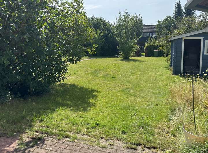 Ein Fenster sorgt für eine gute Be- und Entlüftung. Die Fenster sind isolierverglast und in Kunststoff gefasst. Der Garten ist pflegeleicht mit Rasen, Beeten und Hecken angelegt.