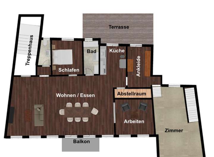- **Moderne Wohnung im Obergeschoss:** Ausgestattet mit einer zeitgemäßen Küche und einem großzügigen Balkon, der einen unvergleichlichen Blick auf den pulsierenden Marktplatz bietet. Erleben Sie die Events und Konzerte hautnah von Ihrem eigenen Balkon aus.