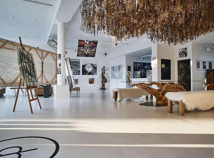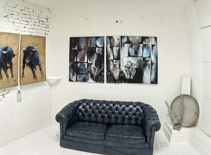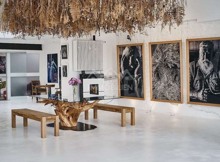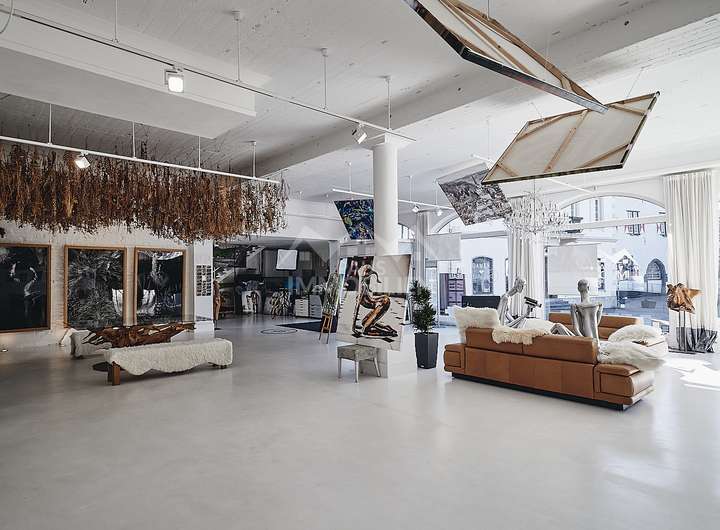 Mit einer Wohnfläche von etwa 180 Quadratmetern und einer Gewerbefläche von circa 459 Quadratmetern bietet dieses Ensemble vielseitige Nutzungsmöglichkeiten: Ob als exklusive Residenz mit Galeriecharakter, als Atelier für Künstler oder als inspirierender Rückzugsort – die Möglichkeiten sind nahezu grenzenlos.