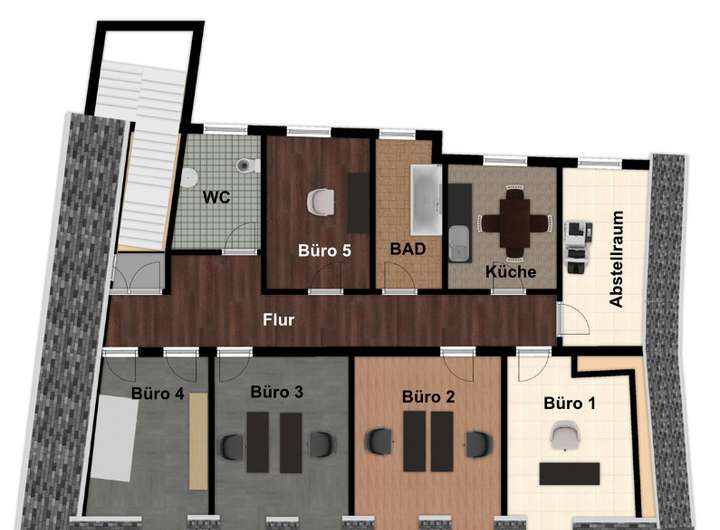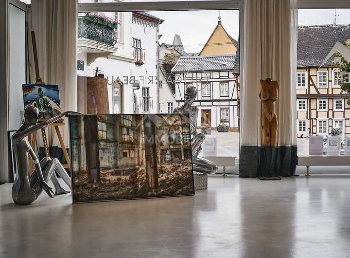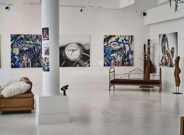 - **Großzügiger Galerieraum im Erdgeschoss:** Ein lichtdurchfluteter Raum mit hohen Decken und einer großen Fensterfront, ideal für Ausstellungen oder kreative Projekte. Hier fließen historische Details und moderne Elemente harmonisch zusammen und schaffen eine einzigartige Atmosphäre.