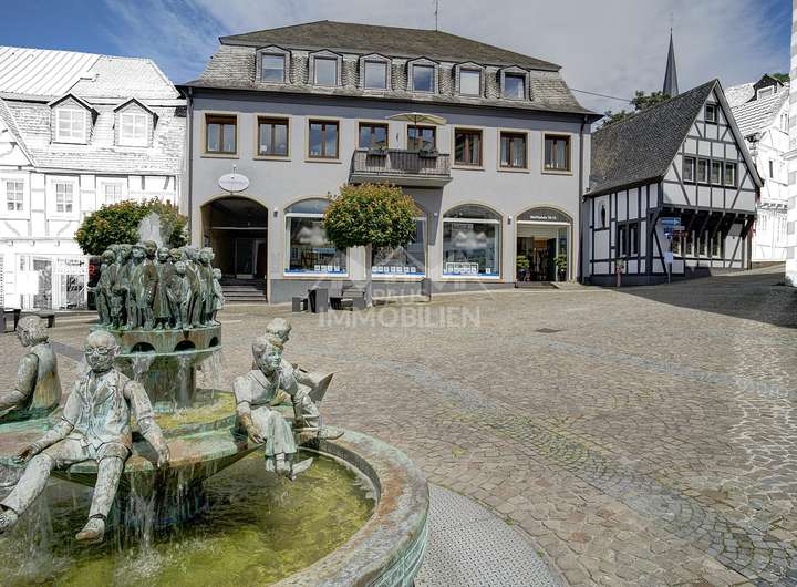 Willkommen im Herzen der Altstadt! Diese einzigartige Immobilie vereint den Charme eines historischen Fachwerkhauses aus dem 17. Jahrhundert mit dem architektonischen Flair eines Gebäudes aus den 1950er Jahren. Direkt am Marktplatz gelegen, bietet sie einen atemberaubenden Blick auf das historische Rathaus und die beeindruckende Mariensäule von 1878.
