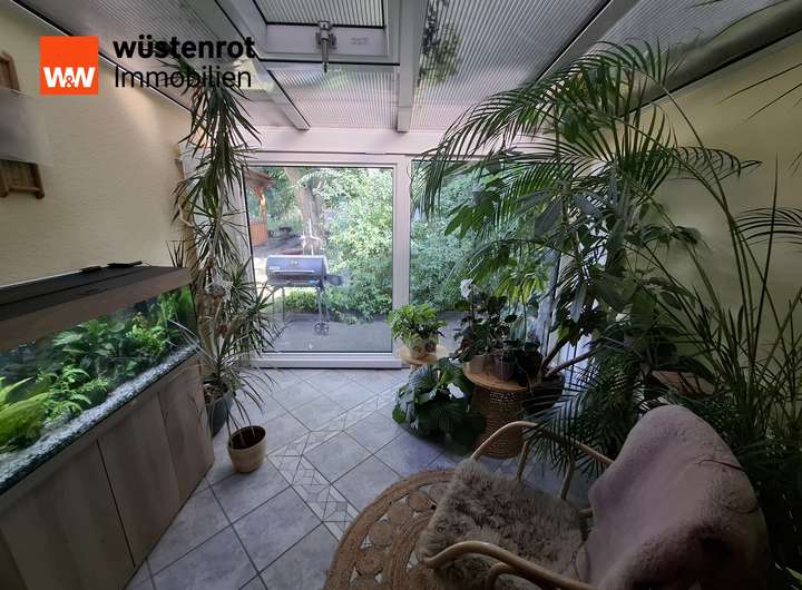 Die funktionale Einbauküche ist voll ausgestattet und wird Ihnen helle Freude beim Zubereiten kulinarischer Köstlichkeiten bereiten. Direkt angrenzend an die Küche und den Wohnbereich befindet sich eine großzügige Terrasse, die zu geselligen Stunden oder ruhigen Momenten im Freien einlädt. Ergänzend dazu wurde ein moderner Wintergarten hinzugefügt, der den Wohnraum erweitert und Ihnen das ganze Jahr über einen hellen und komfortablen Rückzugsort bietet.