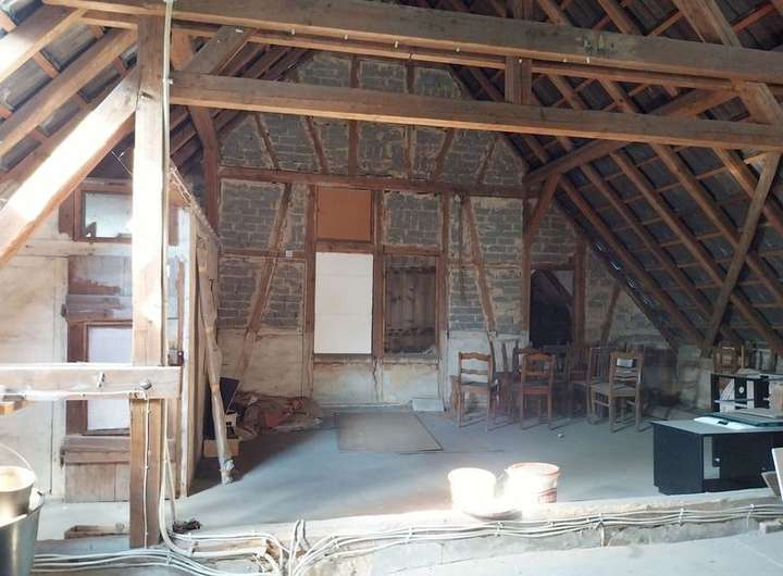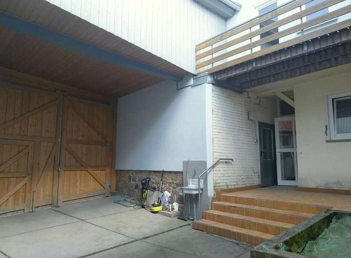 Das Grundstück wurde nach WEG geteilt. Verkauft wird nur das Haus und der Innenhof(s. Pläne Teil Nr.1). Die anschließende Halle verbleibt bei dem Eigentümer. Er betritt die Halle über einen separaten Zugang.