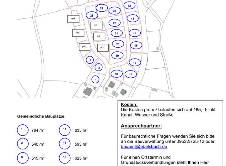 Insgesamt umfasst das Baugebiet "Brunnwiese II" in Stettfeld 28 Bauplätze, davon 20 gemeindliche Bauplätze. Die Erschließungsmaßnahmen für das Baugebiet wurden im September 2023 abgeschlossen. Aktuelle Informationen zur Verfügbarkeit, Größe und Lage der einzelnen Baugrundstücke finden Sie auf der Website der VG Ebelsbach - Gemeinde Stettfeld - Bauen & Wohnen - aktuelle Baugebiete (Link: https://vg-ebelsbach.de/stettfeld/wirtschaft-bauen/bauen-wohnen/aktuelle-baugebiete.html).