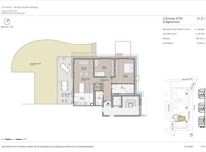 Baumbestand. Die Zufahrt zur Tiefgarage erfolgt über die Straße Hundert