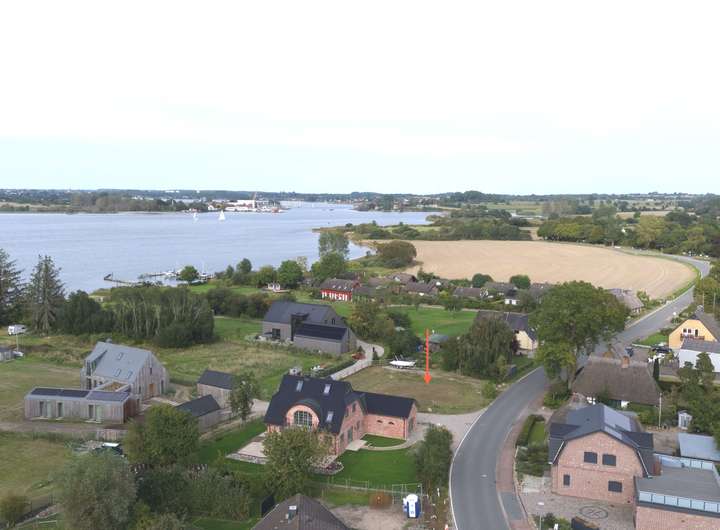 Vor der Liegenschaft, direkt am Schleiufer, liegen große, sich auffächernde, Grundstücke. Der Blick aus den eigenen vier Wänden auf die Schlei wird dadurch wenig eingeschränkt und es bieten sich, auch aufgrund der fast 2 Meter höheren Lage, herrliche Blickachsen auf Deutschlands längsten Ostseefjord. Wassersportler kommen auch in dieser Lage auf Ihre Kosten: der Einstieg in die Schlei mit dem Boot ist, nur ca. 5 Minuten zu Fuß entfernt, über einen Steg möglich. Hier können Boote ohne Weiteres festmachen.