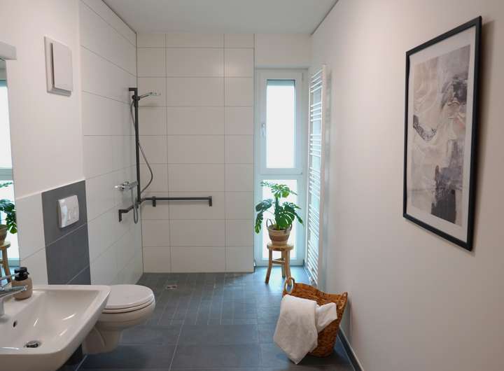 - Barrierefreies Bad und bodengleiche Dusche
