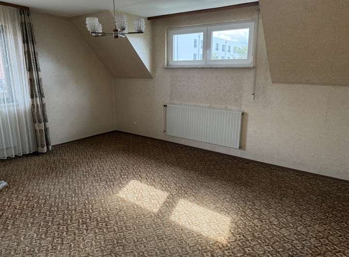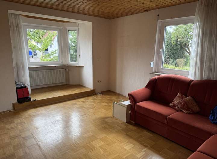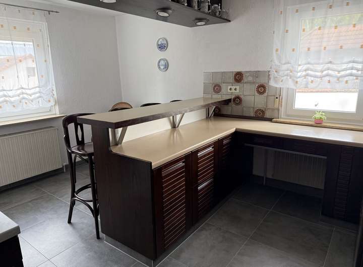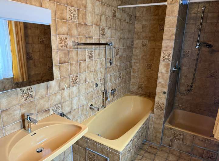 Das Wohnhaus wurde 1933 in solider und massiver Bauweise errichtet und 1956 um einen Anbau erweitert. Auf einer Gesamtwohnfläche von ca. 145 m² erstreckt sich das Wohnhaus über zwei Etagen. Im Erdgeschoss steht eine 3-Zimmer-Wohnung mit Küche und Badezimmer zur Verfügung. Das Dachgeschoss ist mit einer weiteren 3-Zimmer-Wohnung ausgebaut. In dieser Dachwohnung gibt es bislang lediglich ein WC; ein Badezimmer könnte aber bei Bedarf noch realisiert werden. Die beiden Etagen ermöglichen daher eine flexibles Wohnkonzept und schaffen Raum für eine getrennte oder gemeinsame Nutzung als Familie. Das Haus ist voll unterkellert und bietet neben dem Bühnenraum zusätzliche Staufläche und weitere Nutzungsmöglichkeiten. Das Wohnhaus wird mit einer Ölzentralheizung (Bj. 2013) beheizt. Zudem wurde der Großteil der Fenster bereits durch 3-fach verglaste Kunststofffenster erneuert. Abgerundet wird das Angebot durch eine Doppelgarage sowie weitere Stellplätze im Hof.