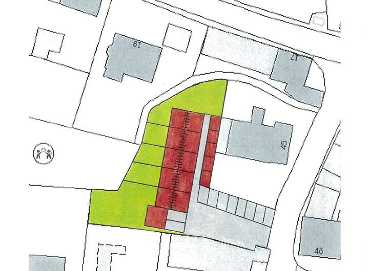 Das derzeit gesamte Grundstück hat im vorderen, rechten Bereich ein 3-Familien-Haus,