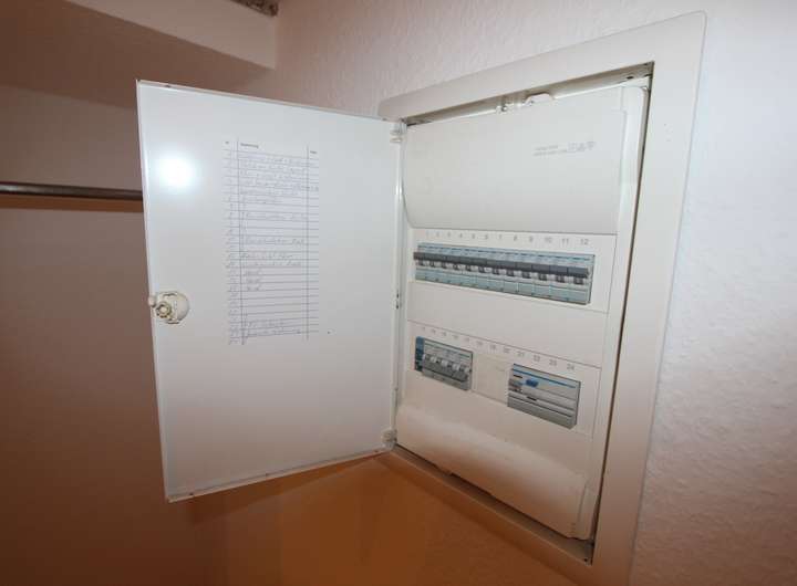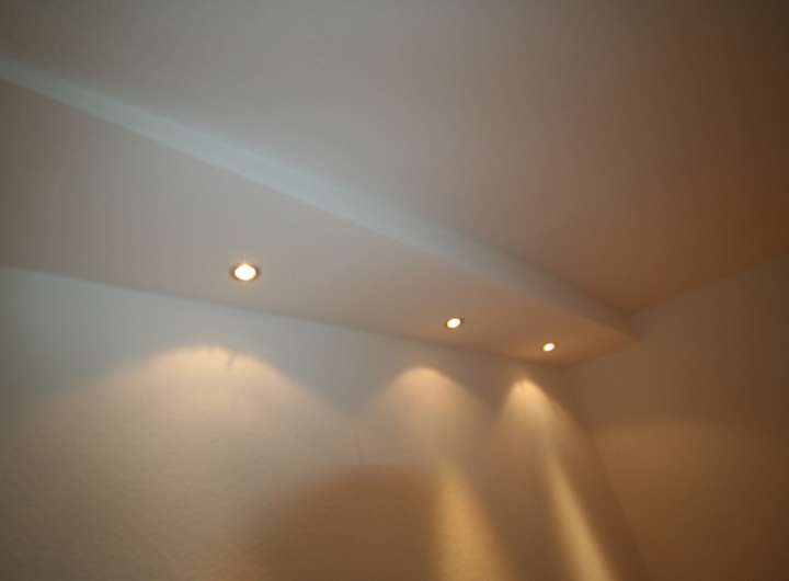 moderne Elektroinstallation, elektrischer Herdanschluß, Flur, Bad und Kochbereich mit Deckeneinbaustrahlern versehen,
