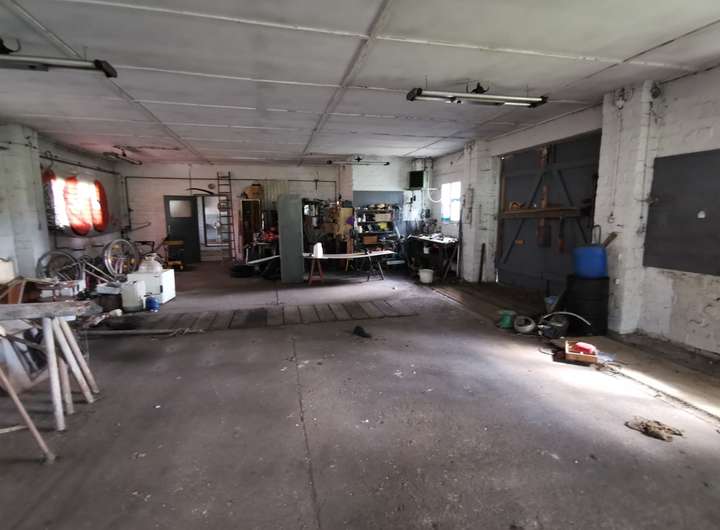 Auf dem Grundstück befinden sich ein Einfamilienhaus sowie ein ehemaliges Werkstattgebäude mit einer Grundfläche von ca. 160 m², das früher als KfZ-Werkstatt genutzt wurde.