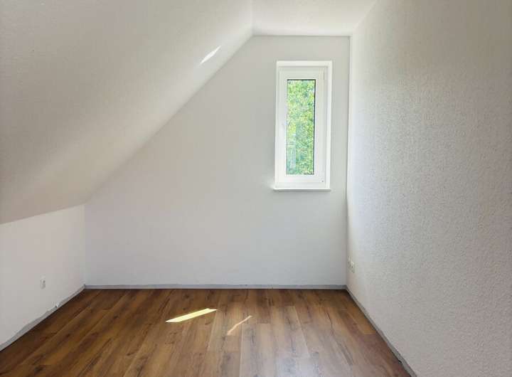 Eine Etage höher finden Sie das größte Schlafzimmer des Hauses, das über einen kleinen Bereich für eine offene Ankleide verfügt. Zudem steht Ihnen hier ein geräumiger Abstellraum zur Verfügung, der reichlich Stauraum bietet.