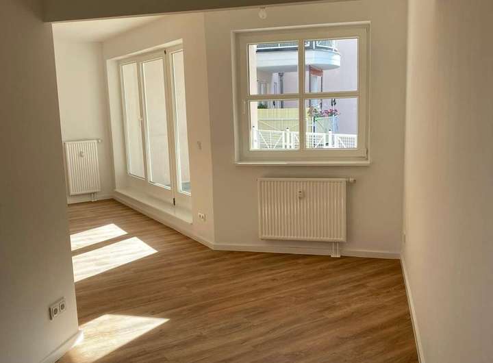 Die Wohnung verfügt über 2 gut geschnittene Zimmer, einen großzügigen Flur (hier kann z.B. ein großer Einbauschrank installiert werden), sowie ein modernes Tageslichtbad mit Badewanne. Des Weiteren befindet sich am Wohnzimmer eine große Loggia. Die Wohnung wurde im September 2024 umfangreich modernisiert. Im Dezember 2025 wird eine neue Einbauküche installiert.