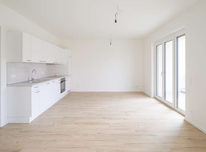 Die moderne 3-Zimmerwohnung verfügt über einen großzügigen Balkon mit westlicher Ausrichtung.