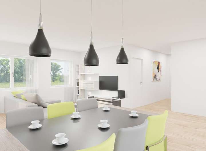 Die projektierte Neubauwohnung zeichnet sich durch ihre durchdachte Architektur und hochwertige Bauweise nach KfW-55 Standard aus, was für hervorragende Energieeffizienz sorgt. Mit einer Wohnfläche von ca. 49,5 m² und einer zusätzlichen Nutzfläche von ca. 4 m² bietet diese Wohnung ausreichend Raum zum Wohlfühlen.