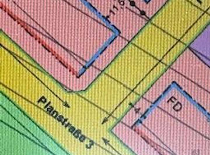 Das Grundstück 327 liegt genau mittig nördlich der großen Grünfläche an der linken Straßenecke Planstraße 2/Planstraße 3 im Baufeld 3.