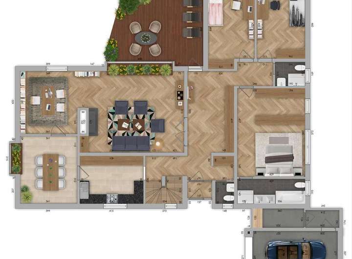 • Wohnfläche: ca. 277 m² • davon im Erdgeschoss: ca. 181 m² • davon im Obergeschoss: ca. 95 m²* • Grundstücksgröße: ca. 1.393 m² • Freistehendes Einfamilienhaus • Kamin • 2 Badezimmer im EG • Separates Gäste-WC im EG • 1Badezimmer im OG • Einbauküche im EG • Pantryküche im DG • Voll unterkellert (mit Tageslichtfenstern) • Öl-Heizung aus 1994 • Große Terrasse • Großzügiger Garten • Großzügige Auffahrt mit Garage • Privatstraße