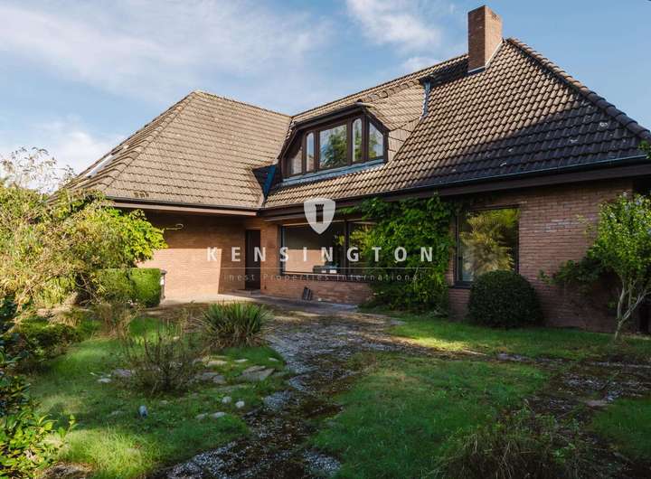 Eine wahre Oase der Ruhe und Erholung bietet dieses großzügige Einfamilienhaus aus dem Jahr 1973. Auf einem ca. 1.393 m² großen Grundstück befindet sich diese beeindruckende Immobilie, die mit einer Wohnfläche von ca. 277 m² und insgesamt 11 Zimmern viel Platz für eine große Familie oder individuelle Nutzungsmöglichkeiten bietet. Drei Bäder sowie ein zusätzliches Gäste-WC sorgen für höchsten Komfort und Flexibilität im Alltag. Im Erdgeschoss befinden sich 7 Wohnräume, 2 Bäder und ein Gäste-WC sowie ein wunderschöner Kamin im Wohnzimmer. Das Elternschlafzimmer verfügt über eine Ankleide und ein Bad en suite, die beiden Kinderzimmer teilen sich ein Bad. Das Haus ist mit einer großzügigen Einbauküche ausgestattet. Die herrliche, nach Südwesten ausgerichtete Terrasse bietet viele Sonnenstunden und Erholung im Freien. Das Dachgeschoss wurde seinerzeit für die Kinder ausgebaut und wurde von diesen genutzt. Es verfügt über 4 Wohnräume, 1 Bad und eine Kochnische. Außerdem gibt es genügend Abstellraum. Zusätzlich ist das Haus nahezu vollständig unterkellert, was noch mehr Stauraum und Nutzfläche bietet. Die Straße am Grundstück ist eine Privatstraße, die zum Grundstück gehört. Im Umkreis von 5-10 Minuten befinden sich diverse Restaurants, Einkaufsmöglichkeiten (Edeka), Kindergärten, Grundschule, Gymnasium und Sportmöglichkeiten sowie der Bahnhof Oberneuland (weniger als 2 km entfernt). Auch die Natur ist direkt vor der Tür, wie der Deich, verschiedene Parks wie Höpkens Ruh oder der Golfclub Oberneuland. Diese Immobilie in der attraktiven Lage Bremen/Oberneuland bietet Ihnen den perfekten Rückzugsort und das ideale Umfeld, um Ihr neues Zuhause nach Ihren Vorstellungen zu gestalten. Lassen Sie sich dieses außergewöhnliche Angebot nicht entgehen!