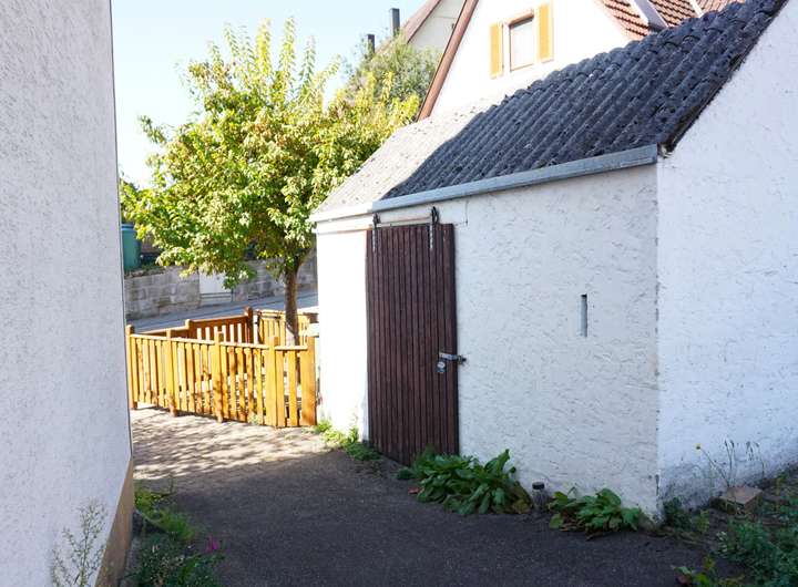 Eine separate Einzelgarage steht zur Verfügung und bietet Ihrem Fahrzeug einen sicheren Stellplatz sowie Schutz vor Witterungseinflüssen. Zusätzlich gehört ein praktischer Schuppen zum Objekt, der sich hervorragend als Stauraum für Gartengeräte, Fahrräder oder Hobbybedarf eignet.