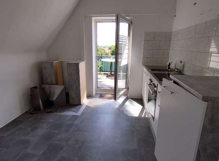 Die zweite Wohneinheit besteht aus zwei hellen Zimmern, einer separaten Küche mit Platz für einen Essbereich und einem modernen Badezimmer.