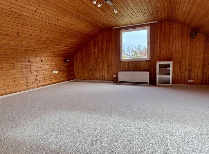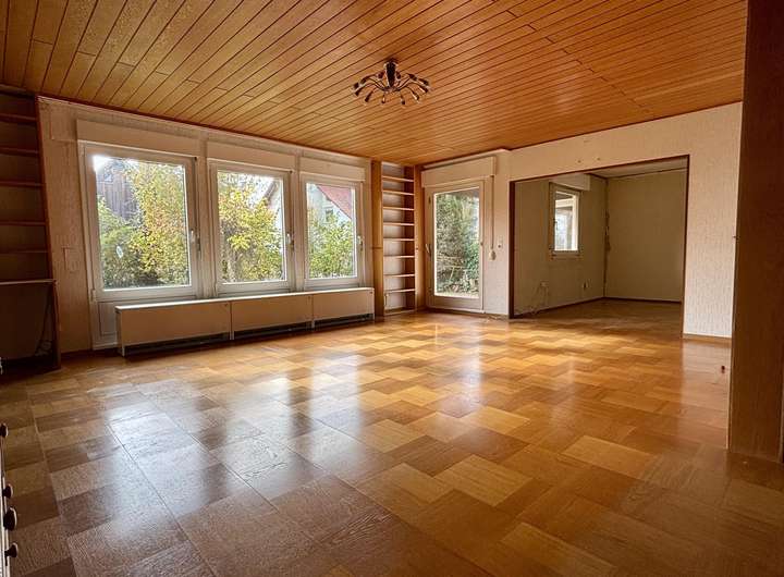 Sie suchen ein großzügiges Haus mit einem sonnigen Garten und möchten Ihr handwerkliches Geschick nutzen? Dann haben wir mit diesem Einfamilienfertighaus der Firma Okal das richtige für Sie. Die Immobilie wurde im Jahr 1971 auf dem 799 m² großen Grundstück erbaut. Das Erdgeschoss umfasst eine Wohnfläche von ca. 108 m² und besticht durch ein lichtdurchflutetes Wohn- und Esszimmer, das durch seine großzügige Raumaufteilung und den direkten Zugang zur teilüberdachten Terrasse beeindruckt. Zudem ist eine gut ausgestattete Küche nahtlos in den Wohnbereich integriert. Neben dem Elternschlafzimmer sind hier noch 2 weitere flexibel nutzbare Zimmer, ein Tageslichtbad sowie ein Gäste-WC vorhanden. Im Jahr 1978 wurde das Dachgeschoss ausgebaut. Auf ca. 60 m² Wohnfäche entstanden 2 helle und geräumige Zimmer mit einem zusätzlichen Duschbad - der ideale Rückzugsort für Ihre Kinder. Sie benötigen noch mehr Platz für Ihre Hobbies? Dann erwartet Sie im UG zusätzlich zu den üblichen Kellerräumen ein beheizbarer Hobbyraum mit Blick ins Grüne und einer integrierten Garage - so gelangen Sie trockenen Fußes in Ihr Heim. Die Gartenflächen bieten Ihnen und Ihrer ganzen Familie genügend Gestaltungsfreiheit, um Ihre individuellen Vorstellungen zu verwirklichen - hier sind Ihrer Kreativität keine Grenzen gesetzt. Lassen Sie sich dieses sehr interessante Angebot nicht entgehen!