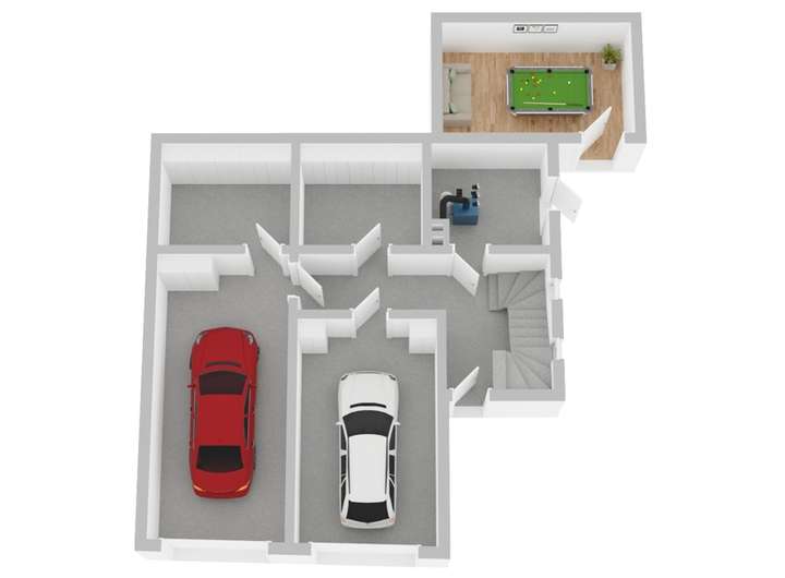 Im Erdgeschoss befinden sich 2 Garagen sowie ausreichend Abstellflächen und ein Hobbyraum zur individuellen Nutzung.