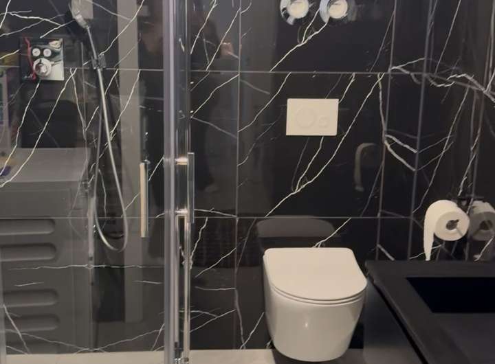 • Badezimmer mit Dusche und Waschmaschinenanschluss